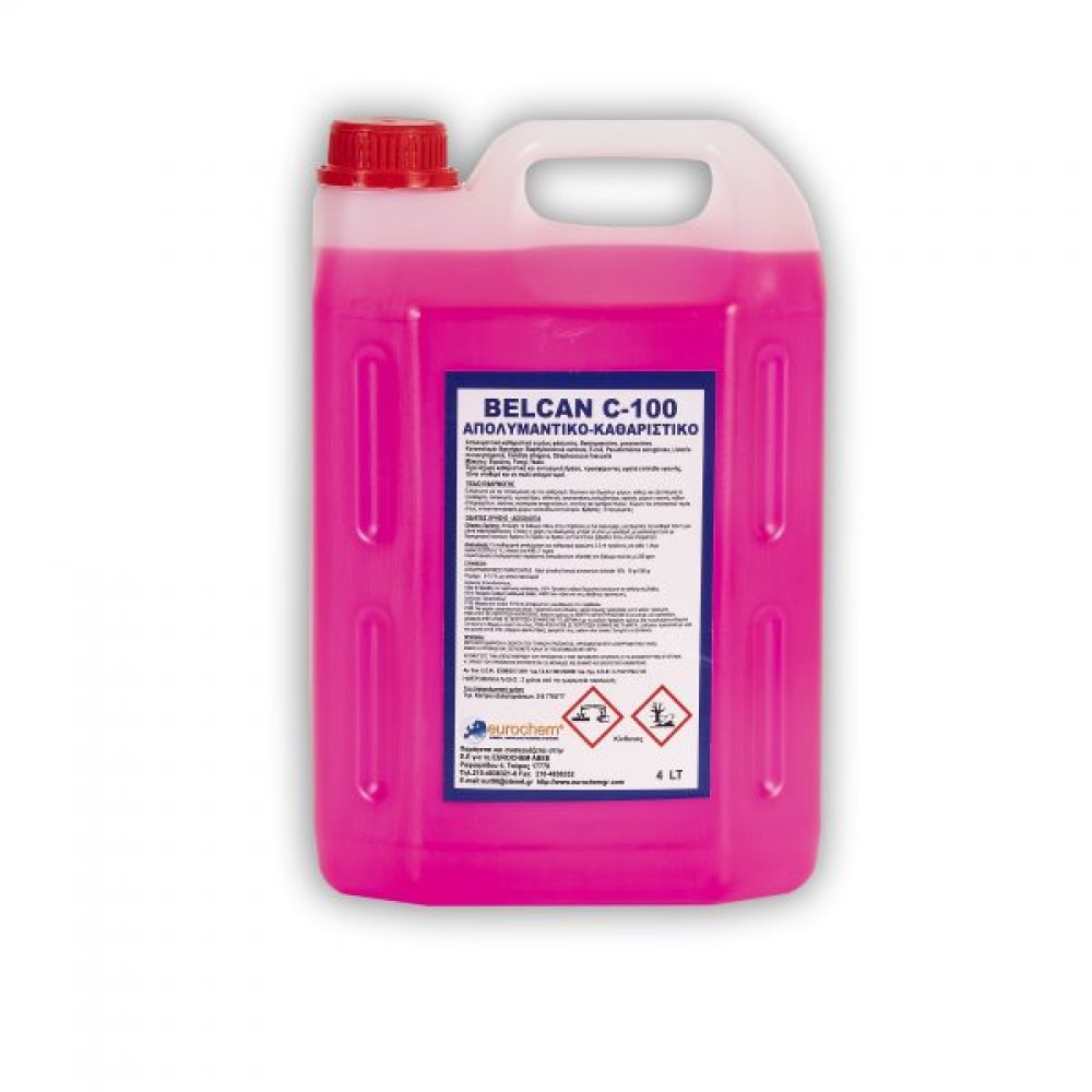 Επαγγελματικό καθαριστικό & απολυμαντικό BELCAN C-100 4Lt. Με χλωριούχο βενζαλκόνιο για πλήρη εξόντωση βακτηριδίων και μυκήτων σε κλιματιστικά.