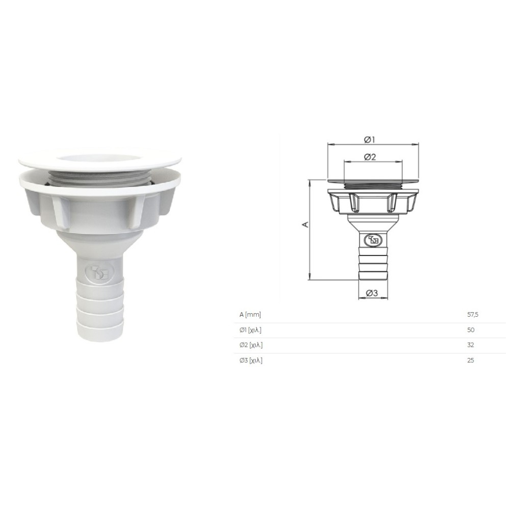 ΑΚΡΟΦΥΣΙΟ ΑΠΟΧΕΤΕΥΣΗΣ ΚΛΙΜΑΤΙΣΤΙΚΩΝ , ΚΑΤΑΛΛΗΛΟ ΚΑΙ ΓΙΑ ΕΞΑΤΜΙΣΤΕΣ ΕΠΑΓΓΕΛΜΑΤΙΚΩΝ ΨΥΓΕΙΩΝ ΜΕ ΒΙΔΩΤΗ ΦΛΑΝΤΖΑ . ΓΙΑ ΤΕΧΝΙΚΑ ΧΑΡΑΚΤΗΡΙΣΤΙΚΑ ΠΑΤΗΣΤΕ ΕΔΩ Condensate drain plug with threaded collar connection Ø32 drain Ø16 - Ø20 - Ø25 - Smart Clima | Tecnosystemi